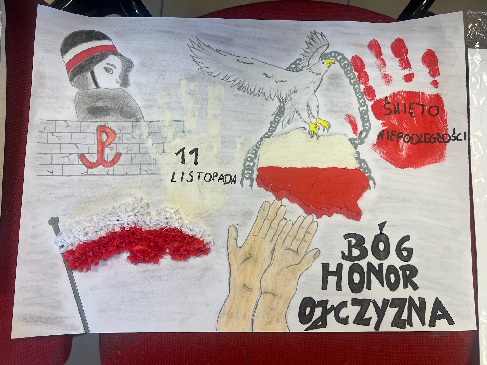 Filii w Ptaszkowej rozstrzygnięto konkurs plastyczny „11 listopada – Narodowe Święto Niepodległości”.